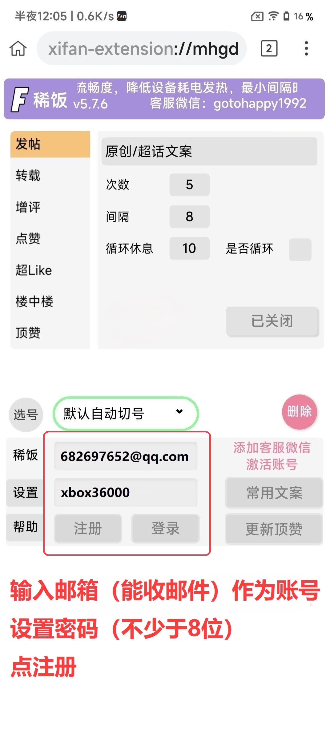 添加账号:
